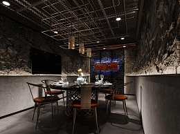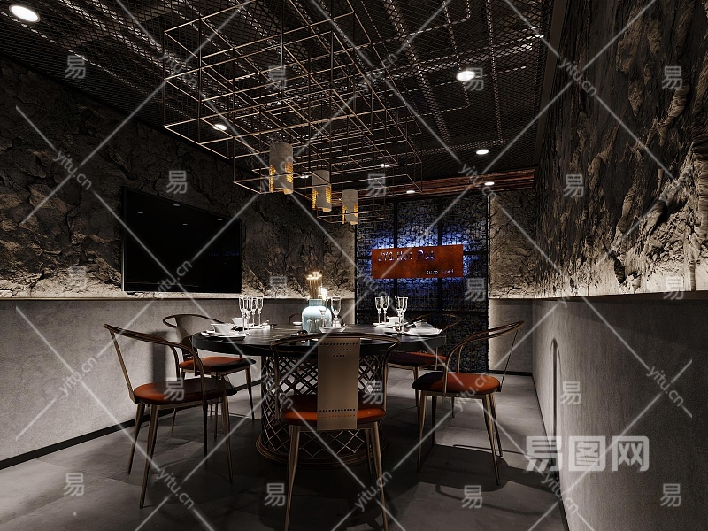 工业风火锅店包厢3D模型下载