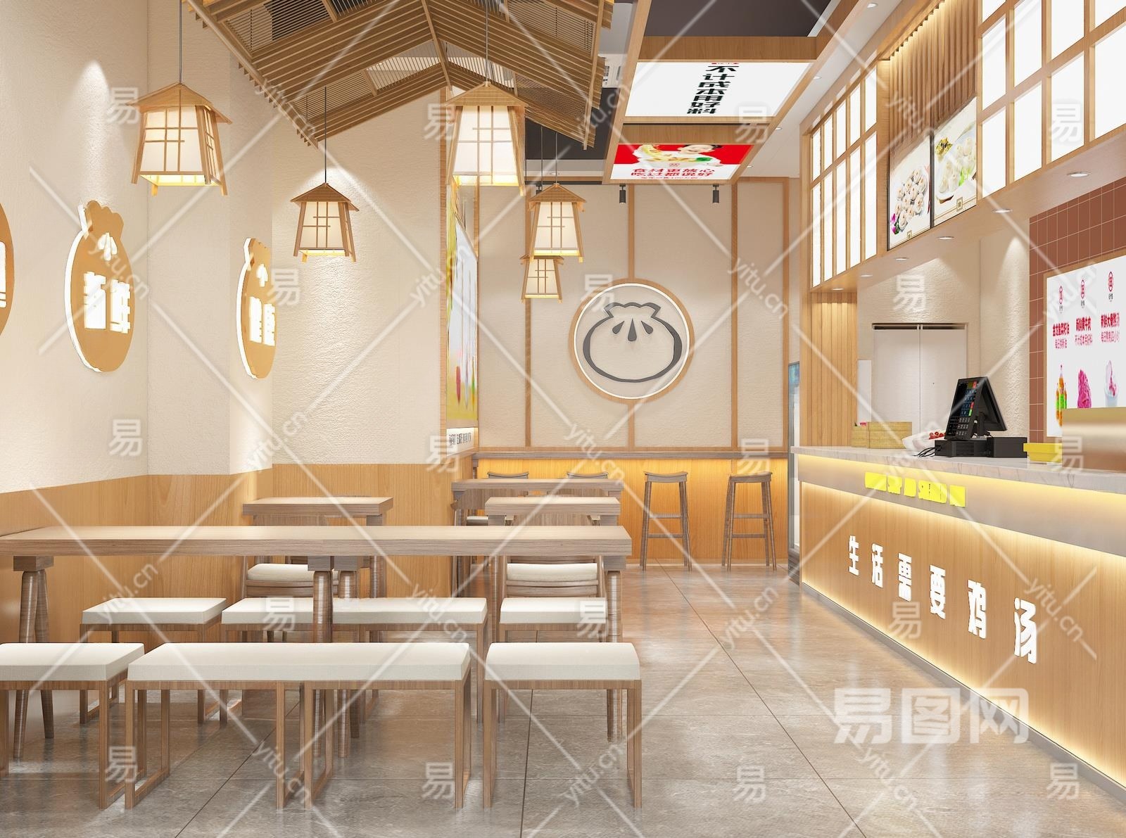 新中式快餐厅3D模型下载
