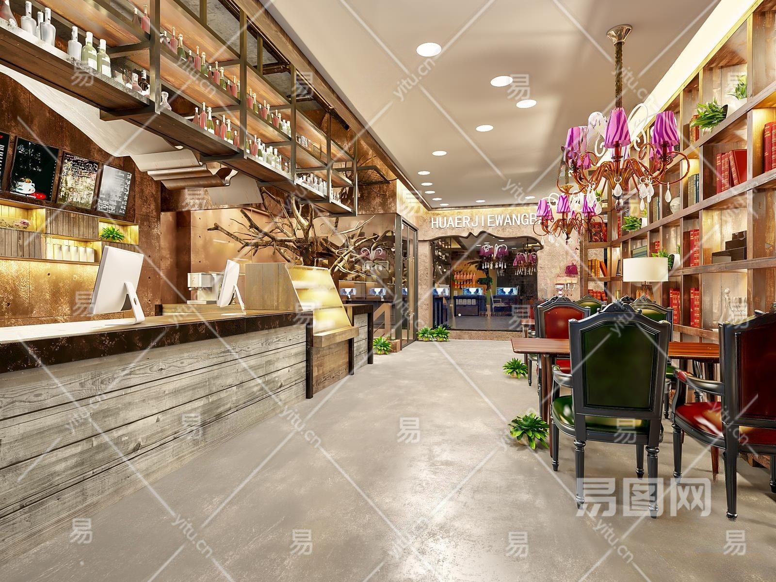 工业风奶茶咖啡店3D模型下载
