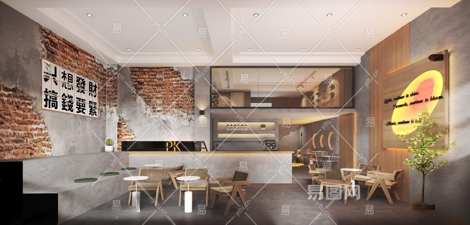 工业风奶茶咖啡店3D模型下载