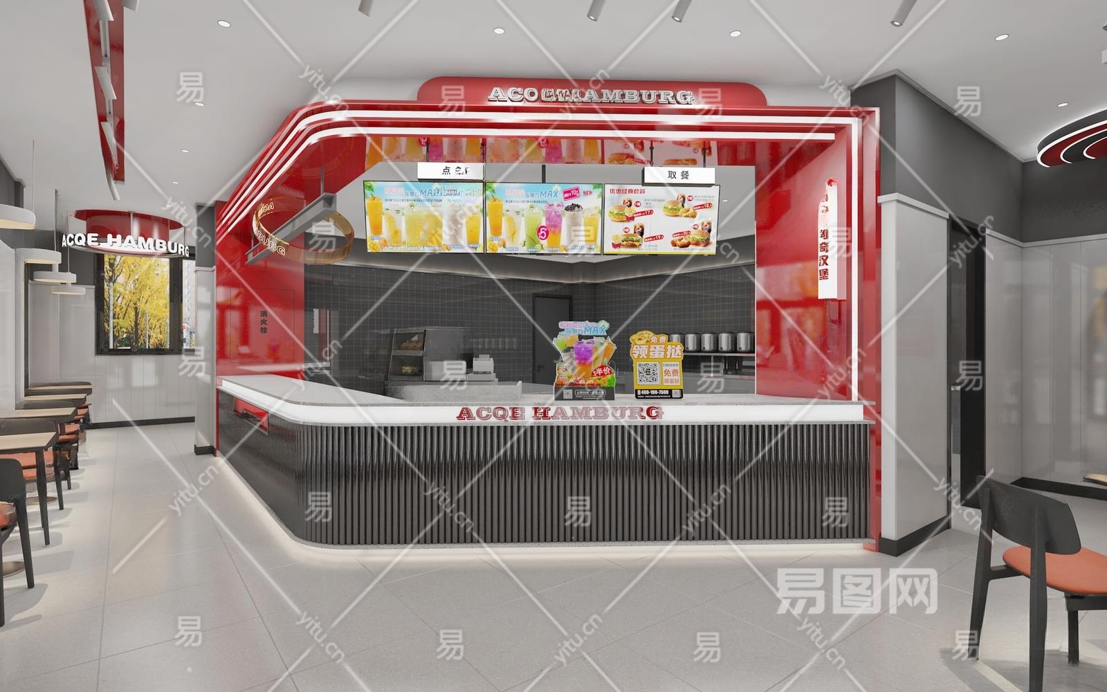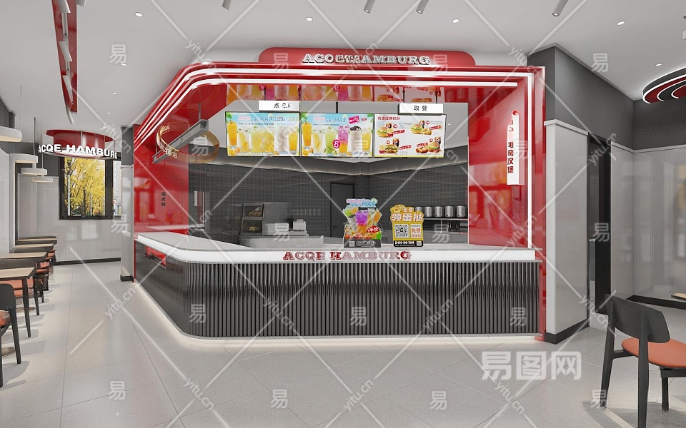 现代奶茶店3D模型下载