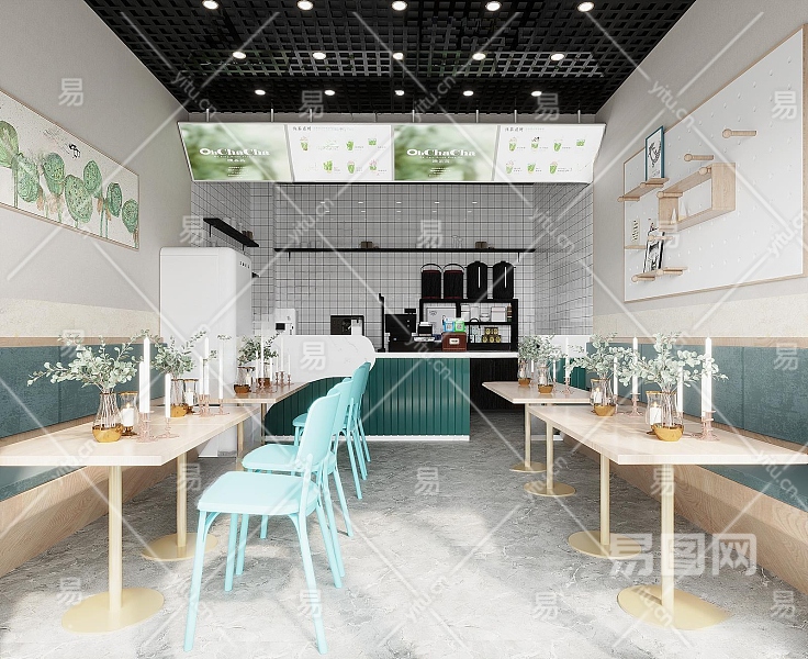 现代奶茶店3D模型下载