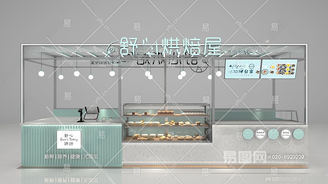 现代甜品面包店3D模型下载