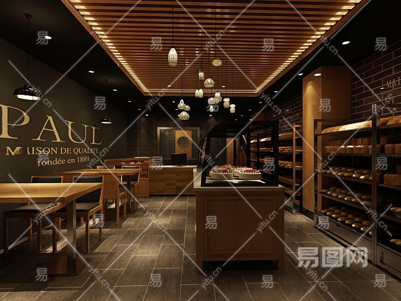 工业风LOFT复古面包店3D模型下载