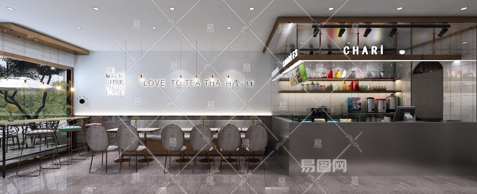 现代轻奢奶茶店门头外立面外景设备不锈钢香槟金吧台3D模型下载