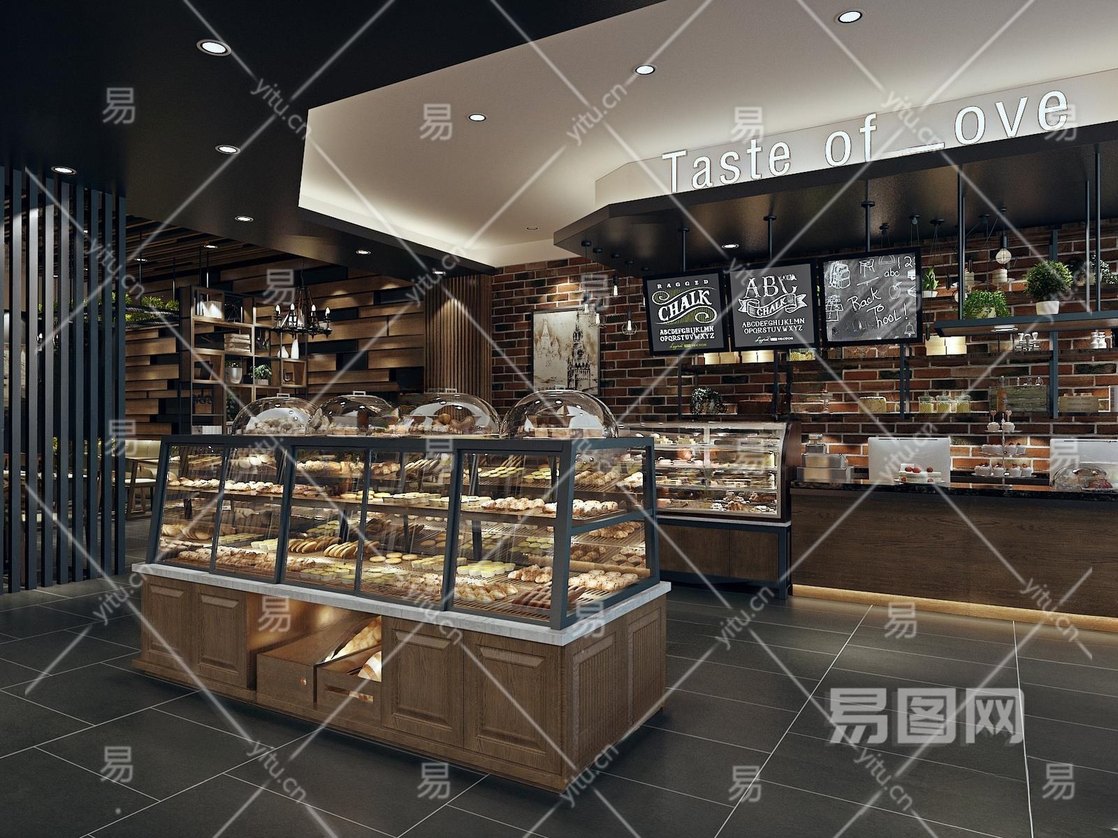 工业风甜品面包店3D模型下载