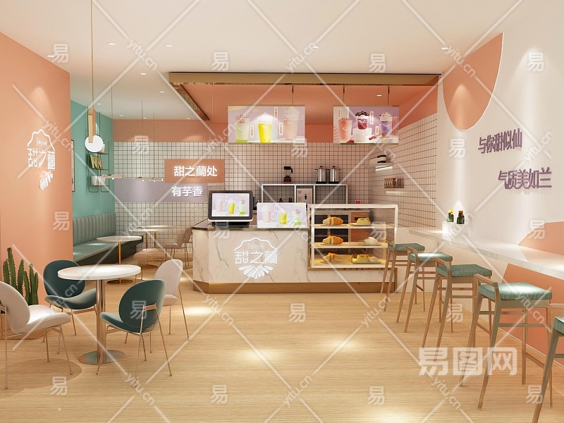 现代奶茶店3D模型下载