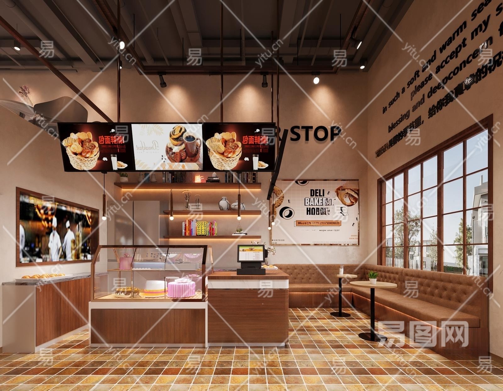 现代面包烘焙店3D模型下载