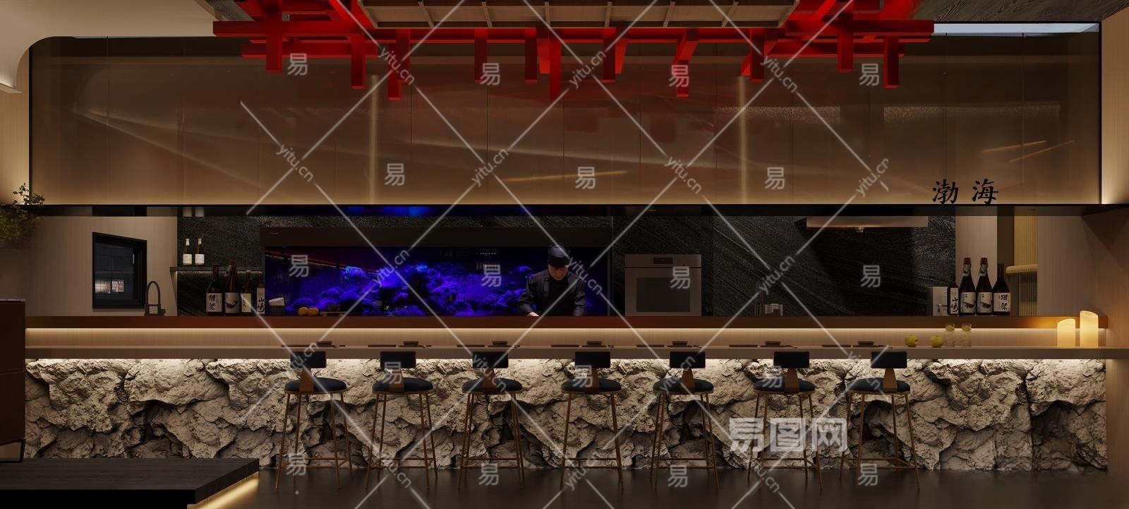 现代日料店3D模型下载