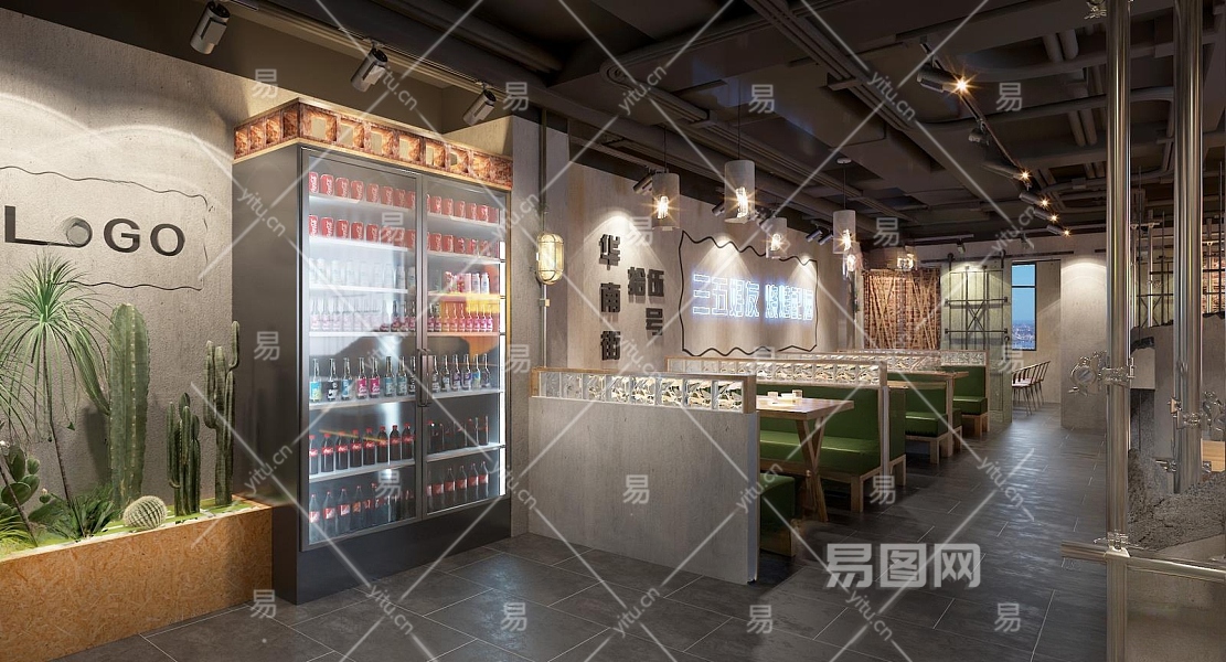 工业风烧烤店3D模型下载
