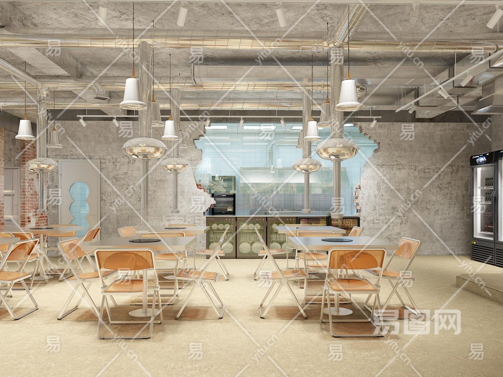 工业风烧烤店3D模型下载