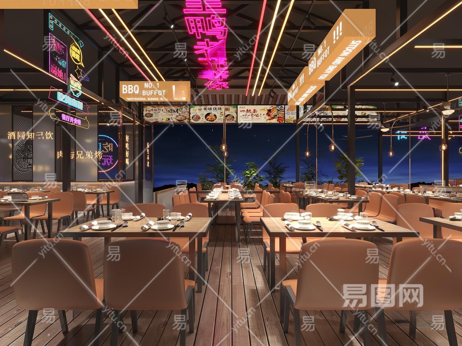 工业风烧烤店3D模型下载
