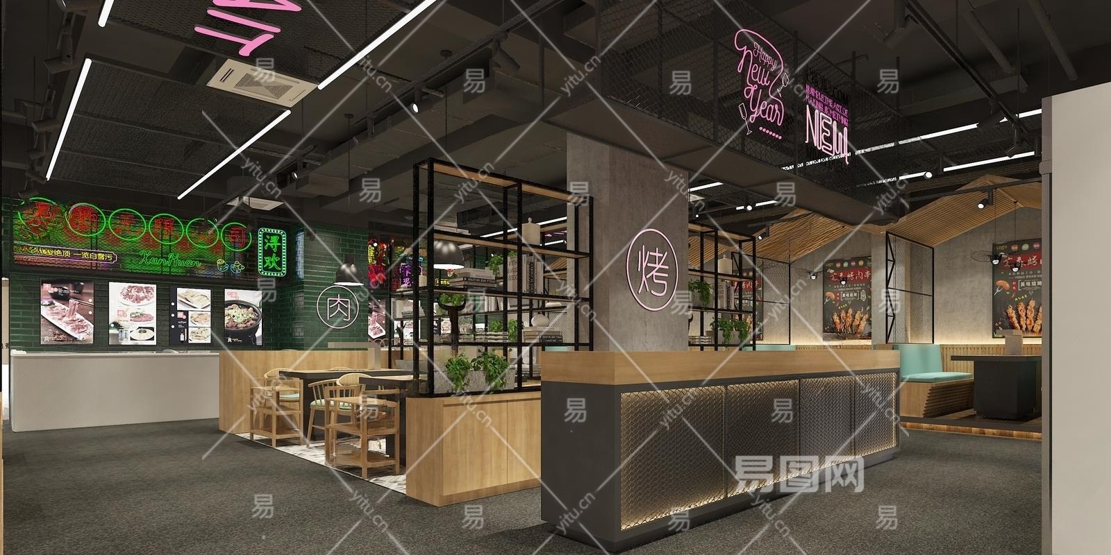 工业风烧烤店3D模型下载