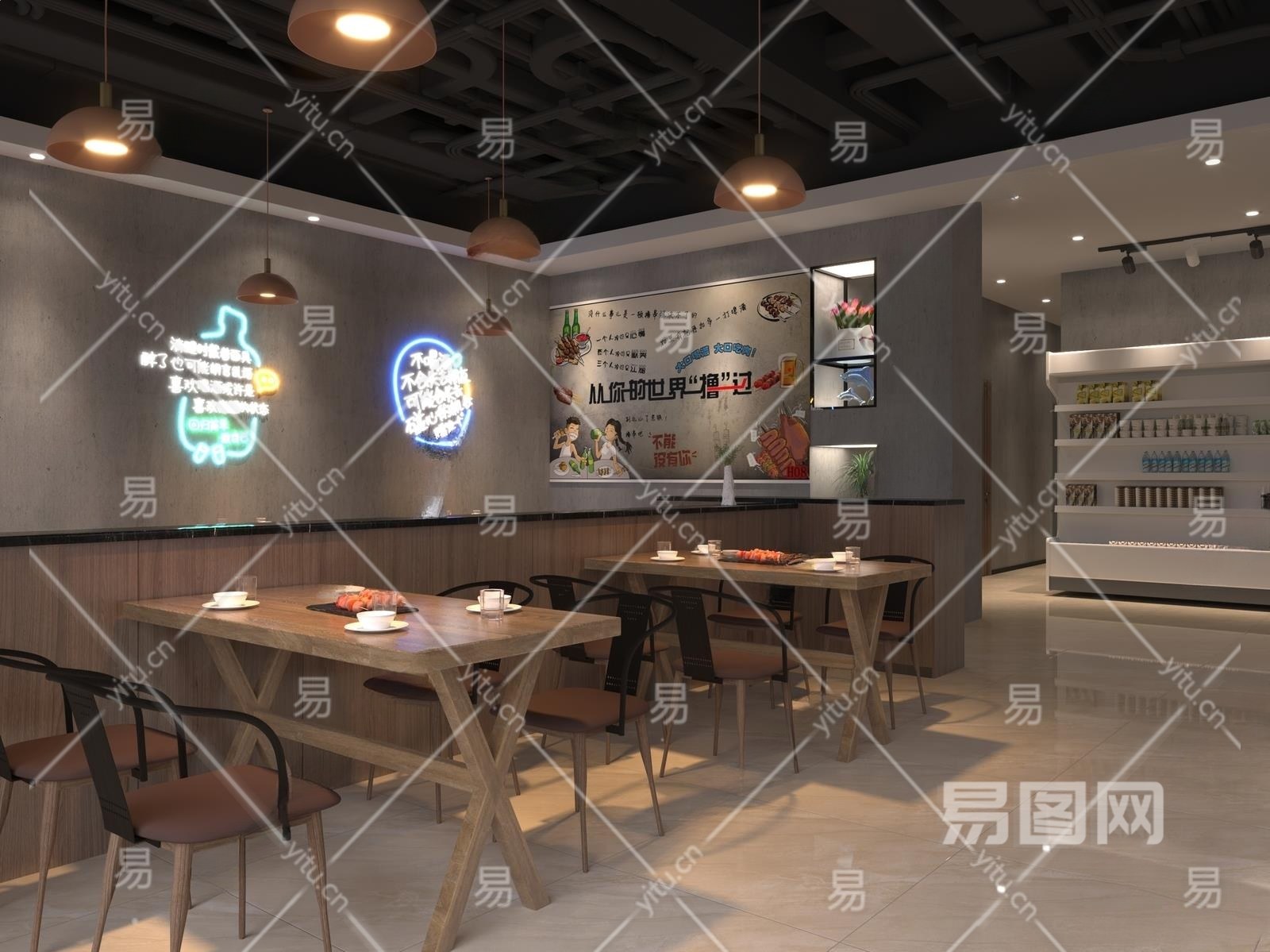 工业风烧烤店3D模型下载