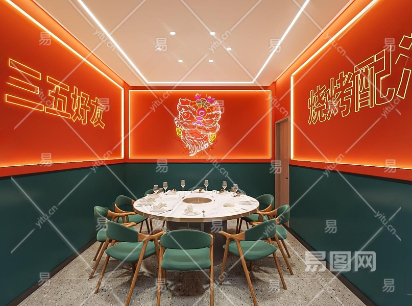 工业风国潮烧烤店包间3D模型下载