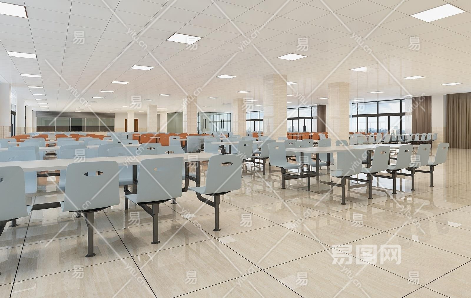 现代员工大食堂3D模型下载
