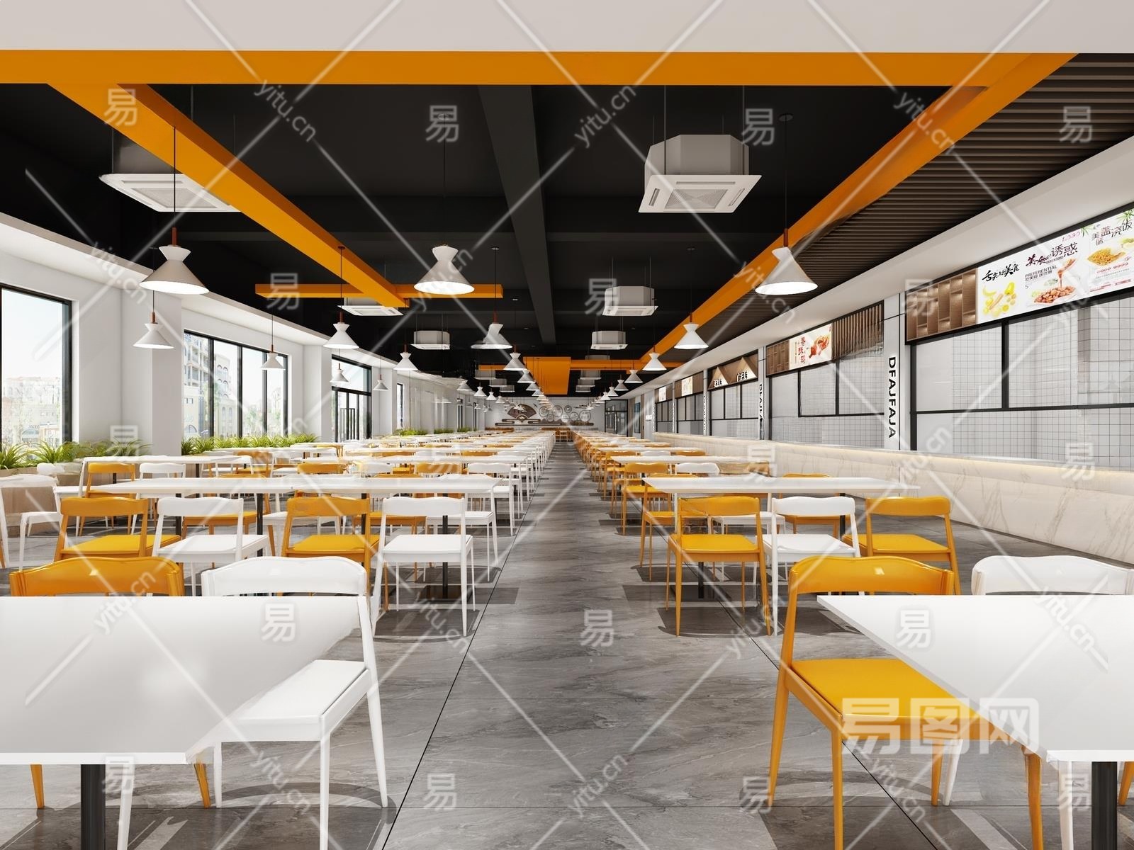 现代食堂3D模型下载
