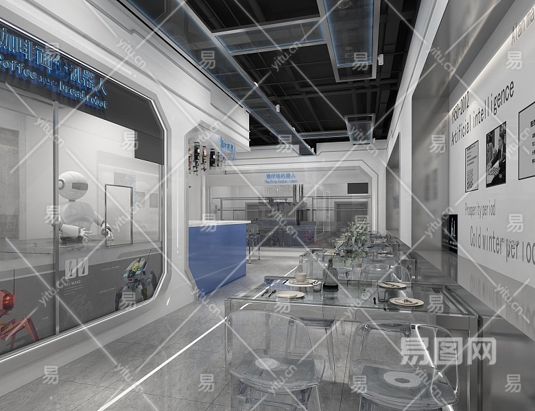 现代机器人主题餐厅3D模型下载