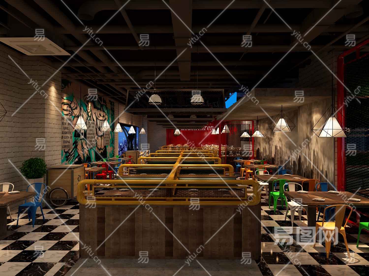 当前的位置:首页 > 3D模型 > 餐饮空间 > 西餐厅 > 工业风西餐厅 工业风黑色铁艺吊灯 工业风棕色木艺餐桌椅组合