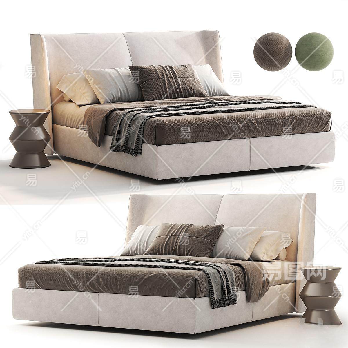 当前的位置:首页 > 3D模型 > 床具 > 双人床 > DOMKAPA现代布艺双人床-3