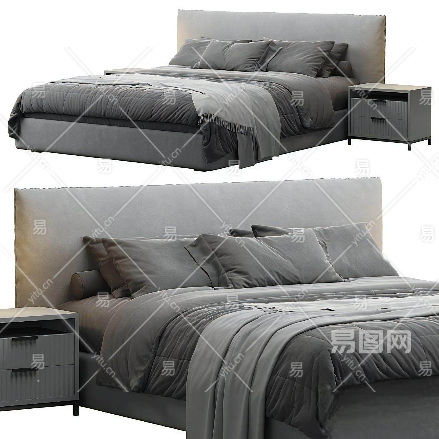 当前的位置:首页 > 3D模型 > 床具 > 双人床 > FUNNY现代双人床 布艺双人床 床