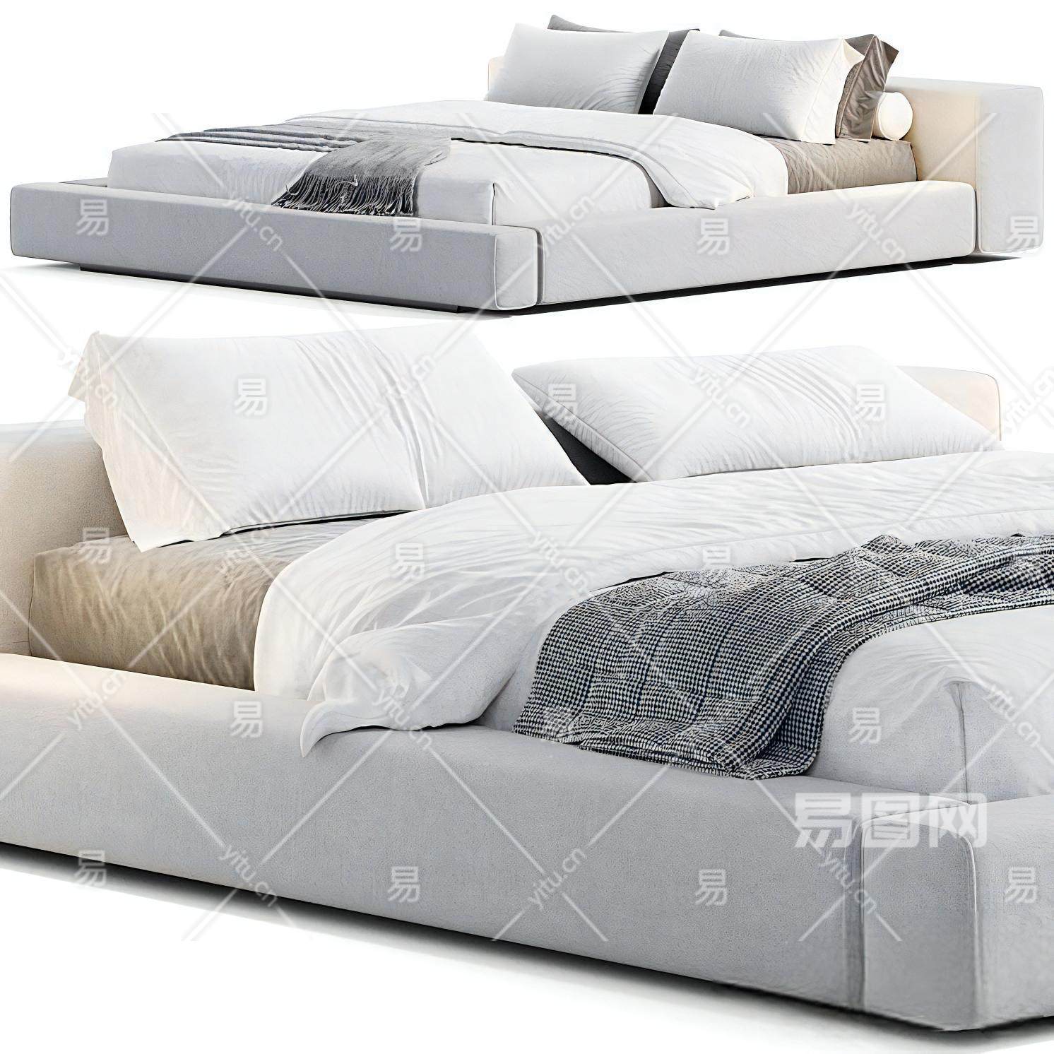 LIVINGDIVANI现代双人床 抱枕 毯子