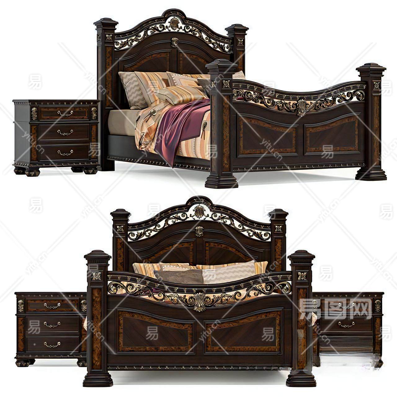 当前的位置:首页 > 3D模型 > 床具 > 双人床 > 欧式古典双人床组合