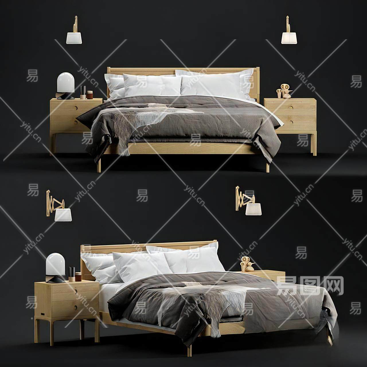 当前的位置:首页 > 3D模型 > 床具 > 双人床 > 现代布艺双人床 床头柜-3