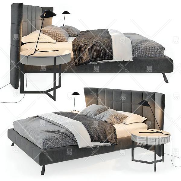 当前的位置:首页 > 3D模型 > 床具 > 双人床 > 现代布艺双人床 床头柜-5