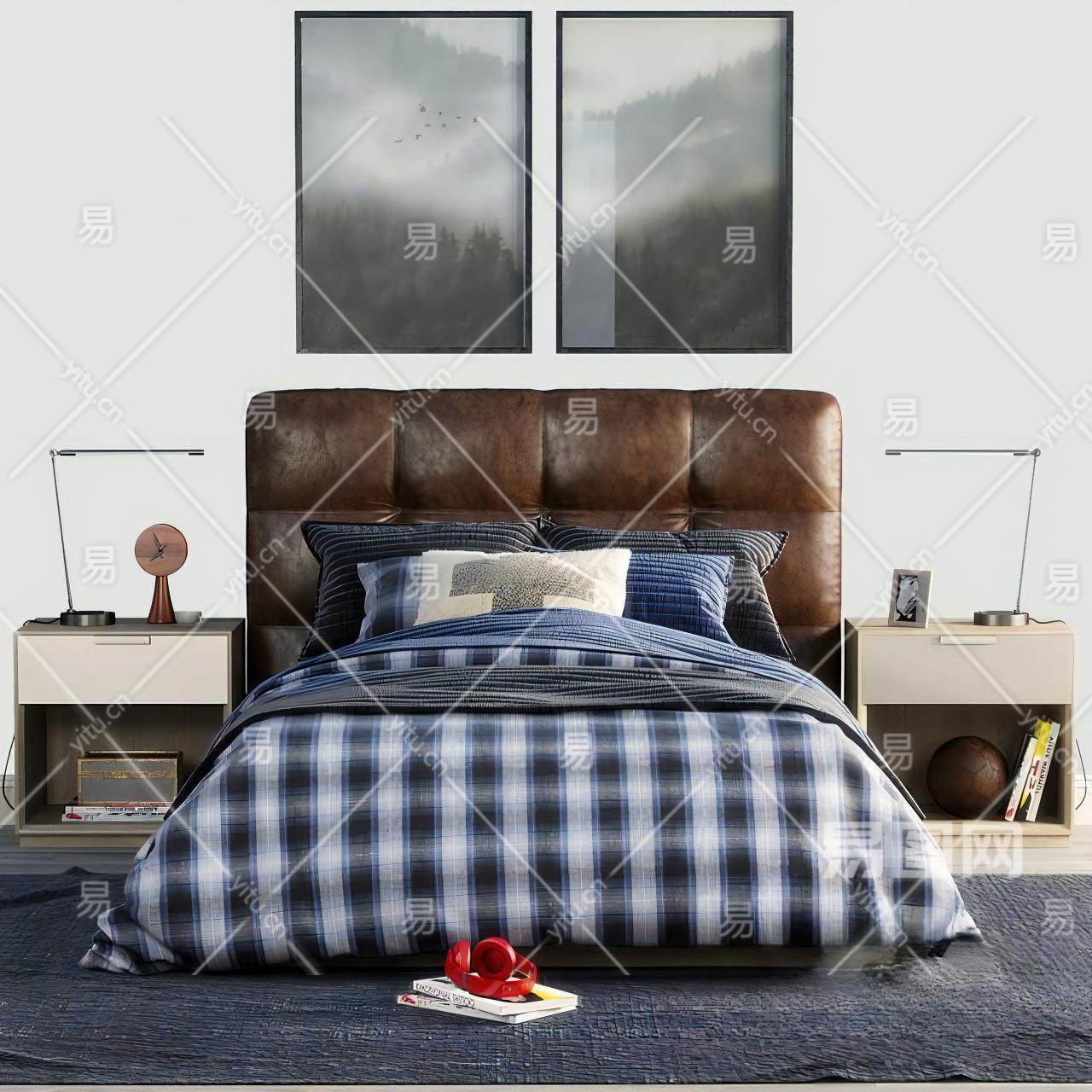 当前的位置:首页 > 3D模型 > 床具 > 双人床 > 现代家具双人床装饰画摆件床头柜台灯床头灯