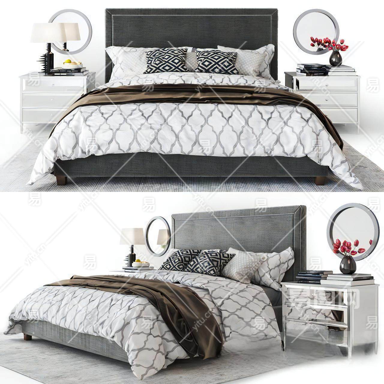 当前的位置:首页 > 3D模型 > 床具 > 双人床 > 新中式双人床 床头柜