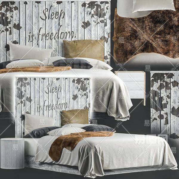 当前的位置:首页 > 3D模型 > 床具 > 双人床 > 新中式布艺双人床床头柜吊灯组合