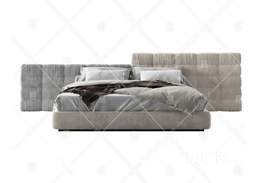 现代双人床3D模型下载