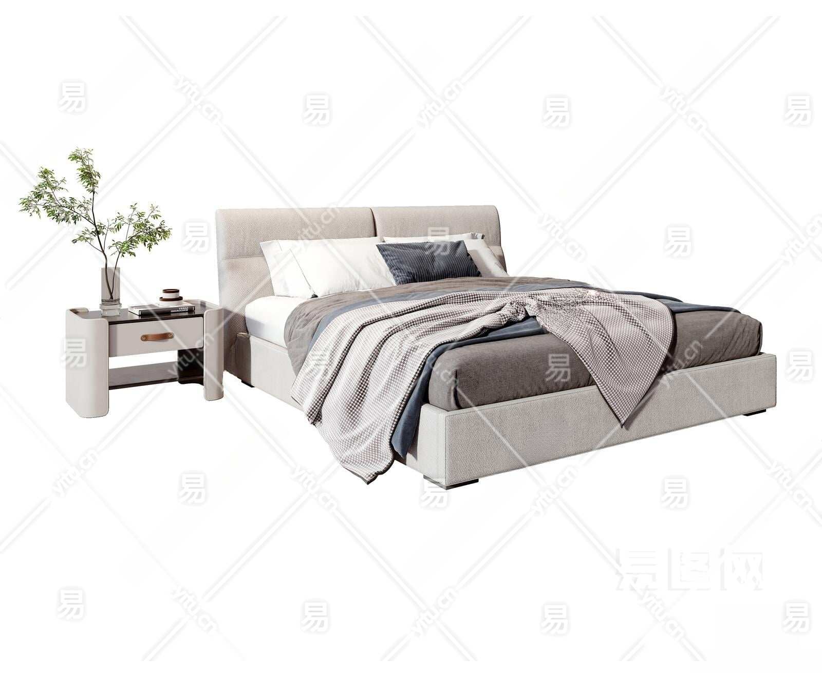 现代双人床3D模型下载