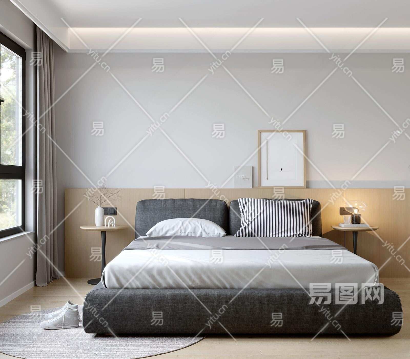 现代布艺双人床3D模型下载