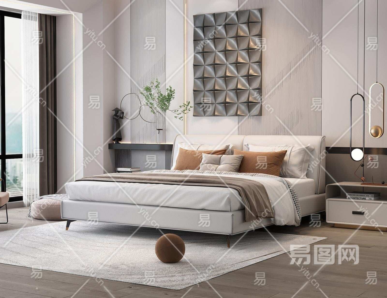现代双人床3D模型下载