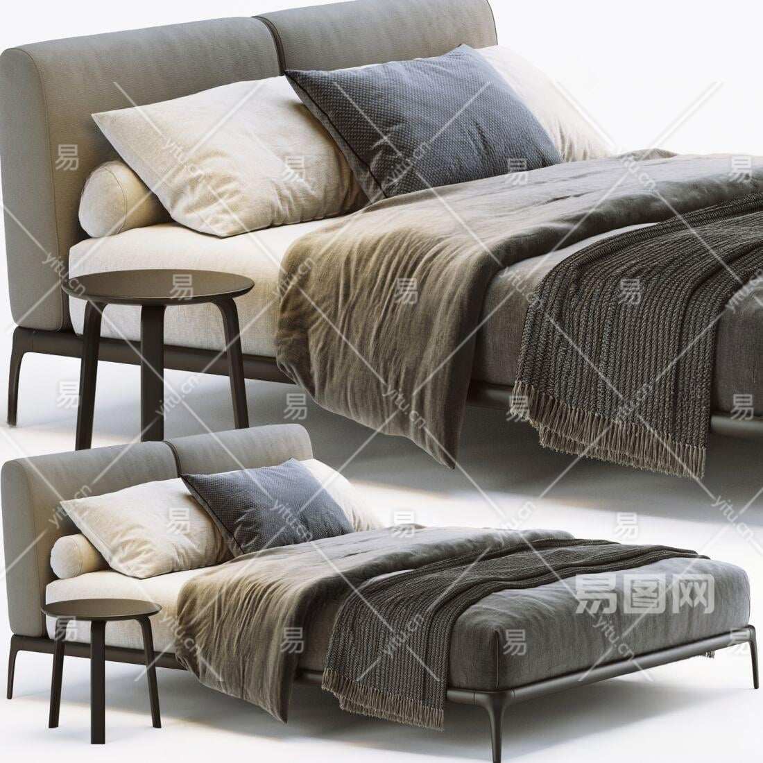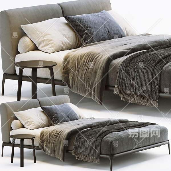 北欧双人床3D模型下载