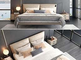 现代双人床3D模型下载