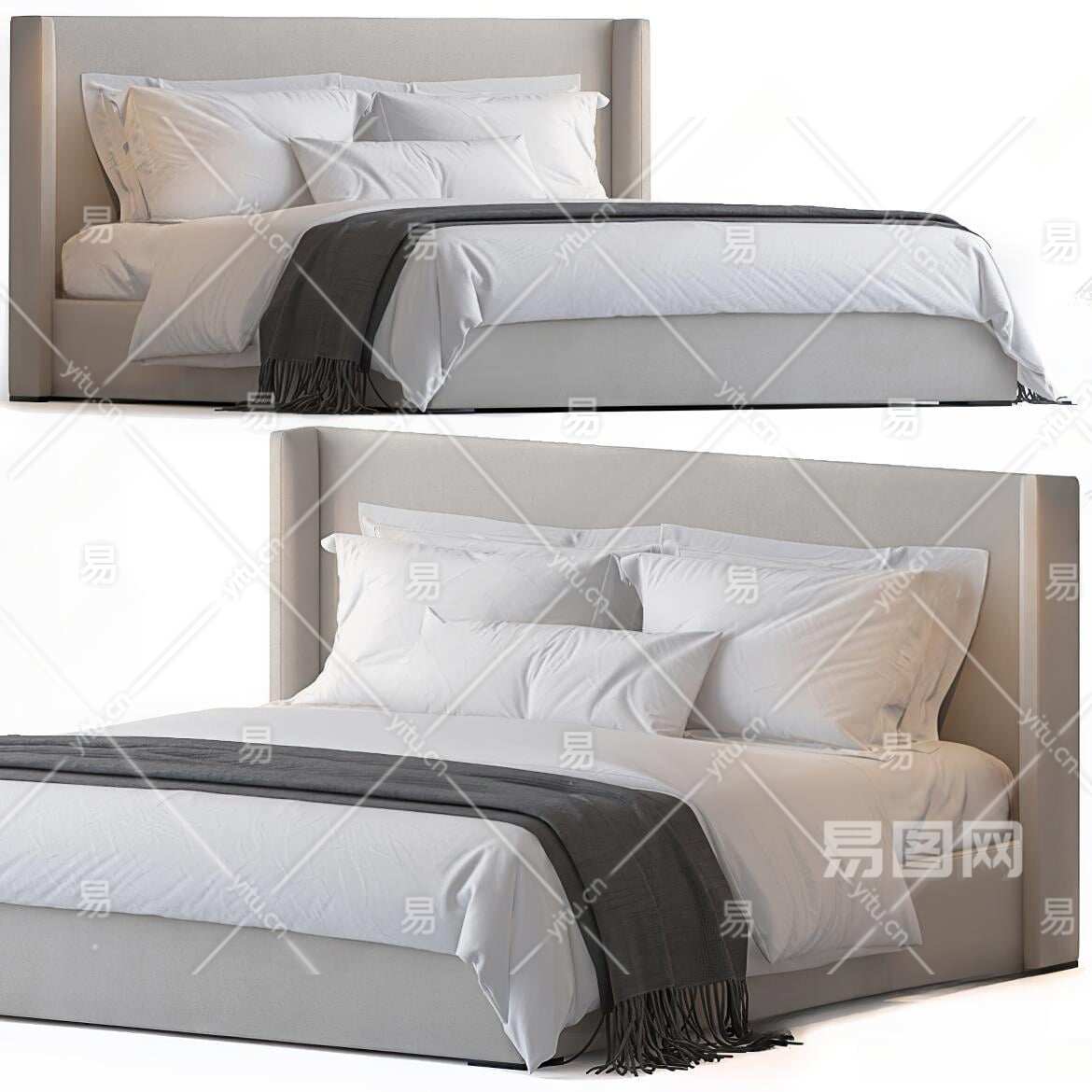 现代双人床3D模型下载