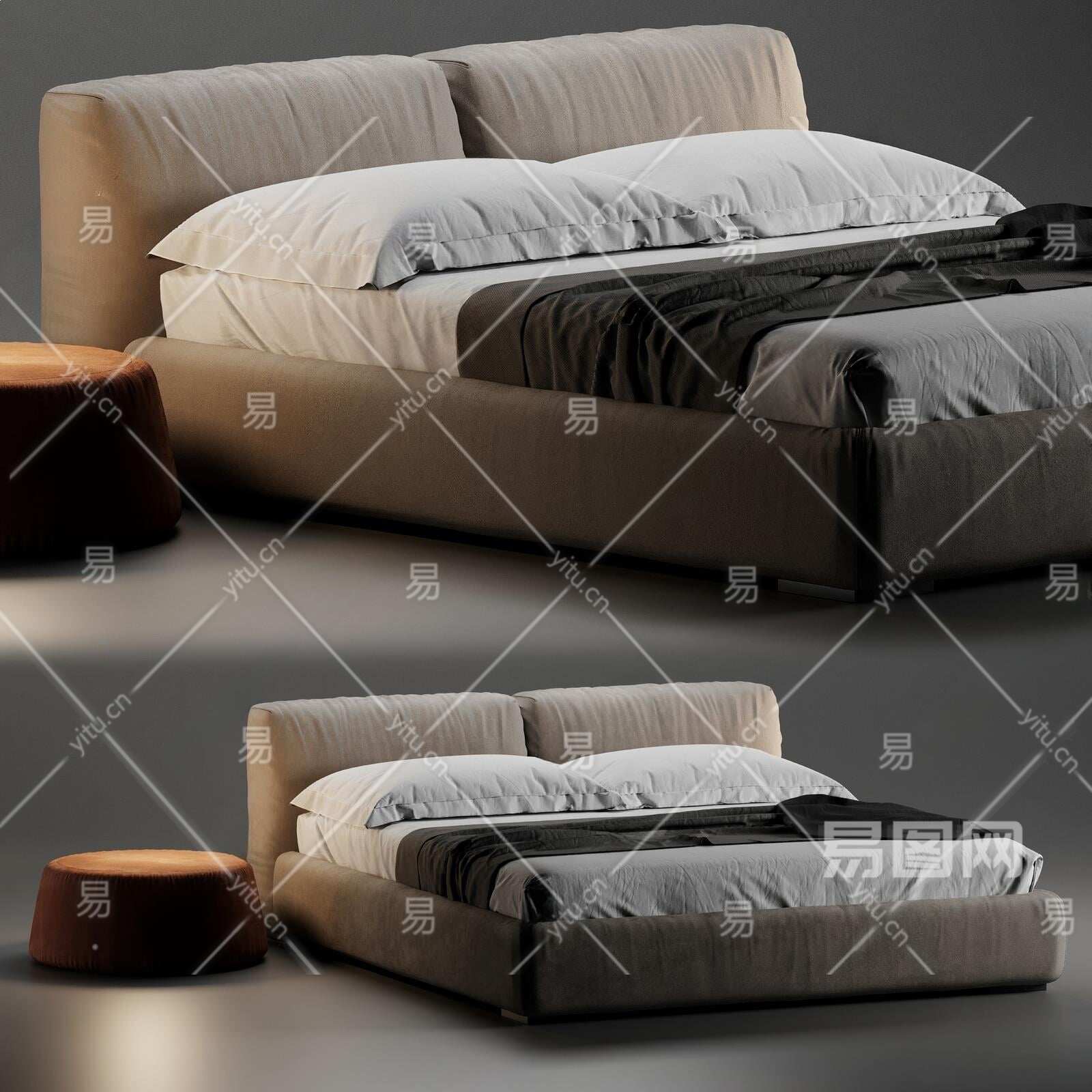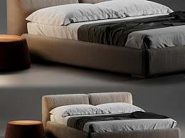 现代布艺双人床3D模型下载