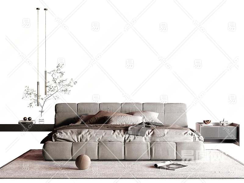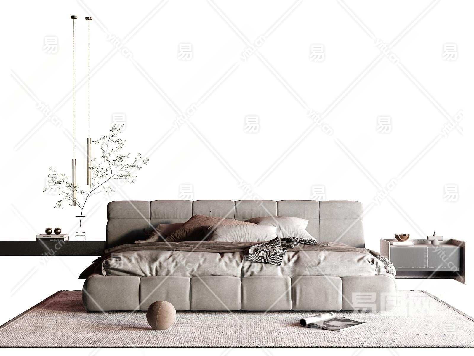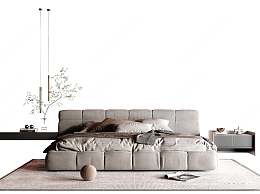 现代双人床3D模型下载
