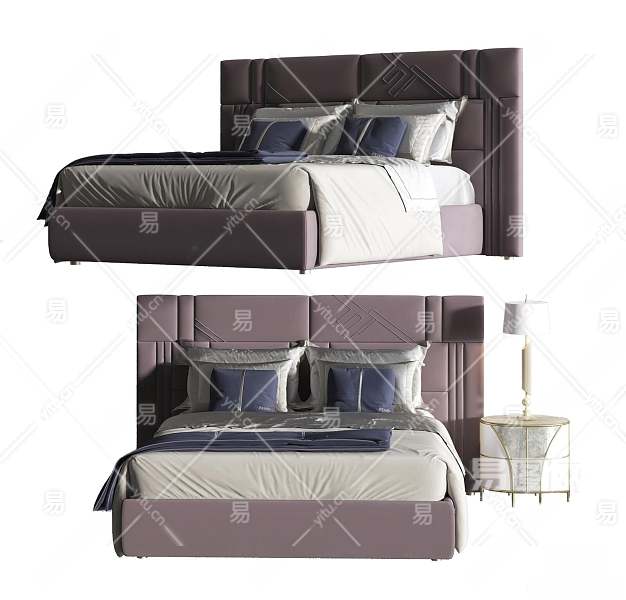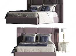 现代双人床3D模型下载