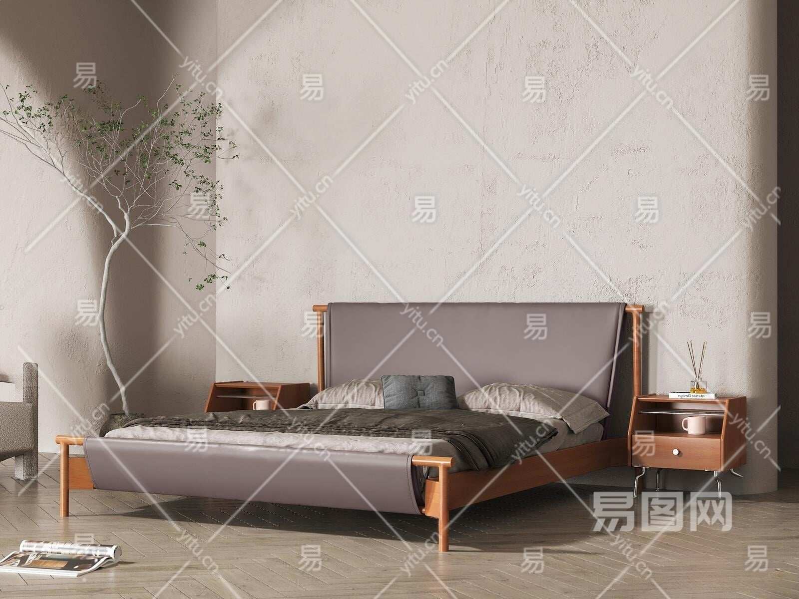 北欧双人床3D模型下载