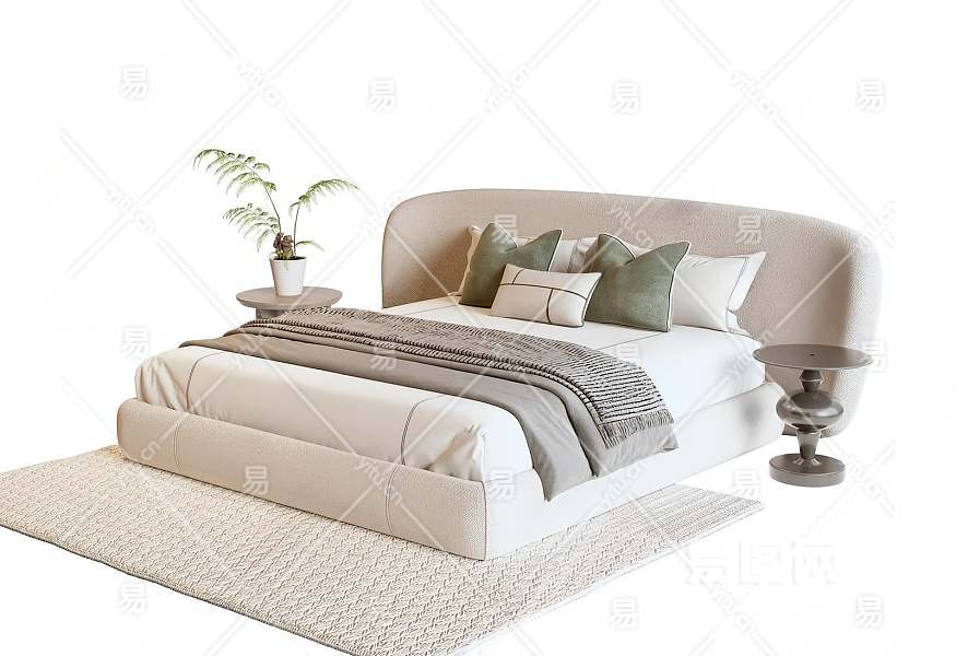 现代双人床3D模型下载