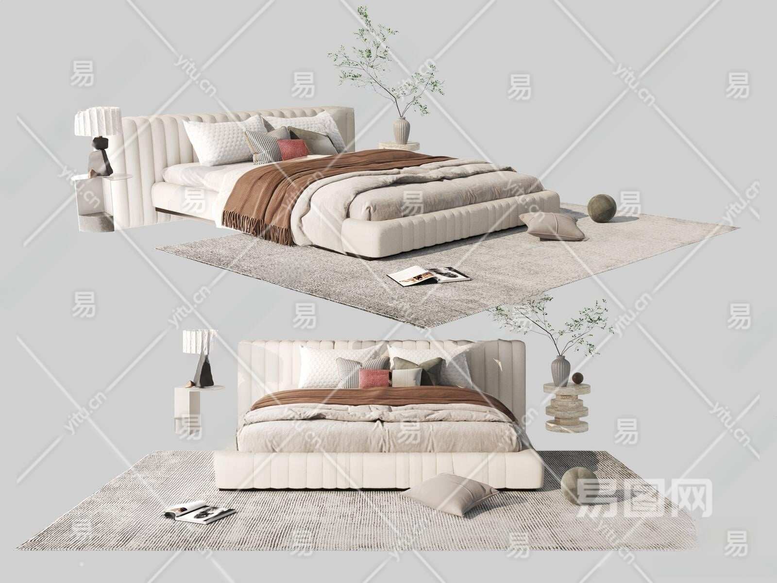 现代双人床3D模型下载