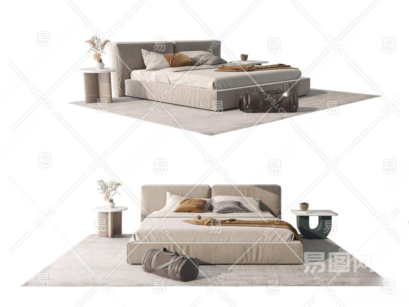 现代双人床3D模型下载