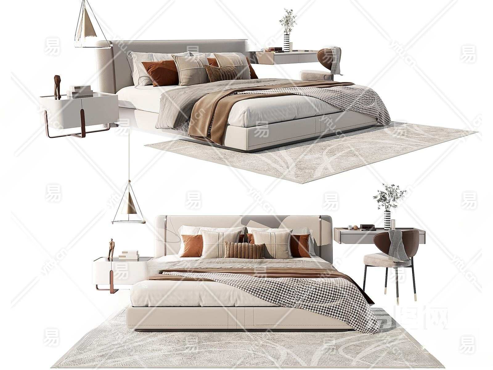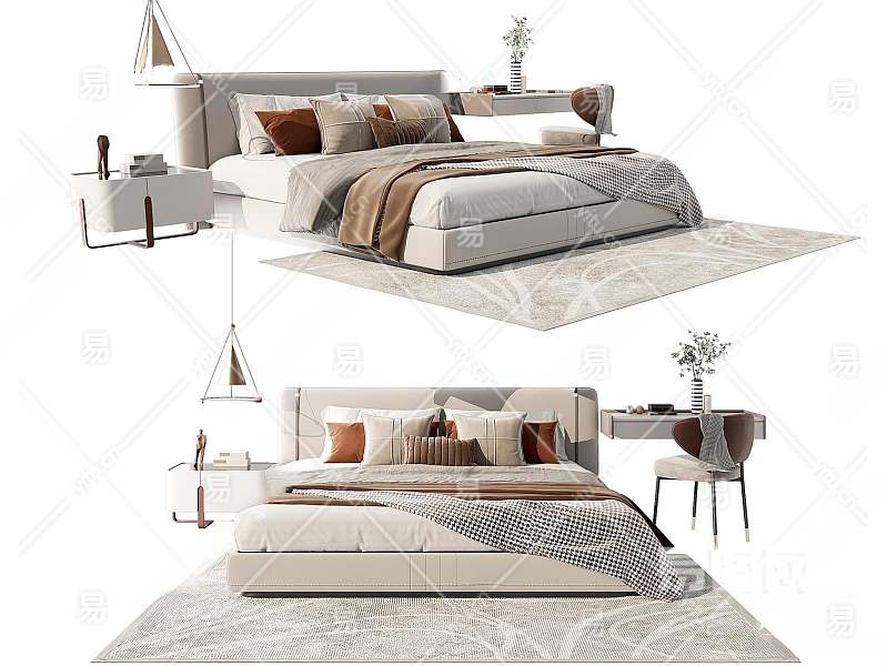 现代双人床3D模型下载