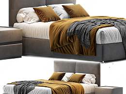 现代布艺双人床3D模型下载