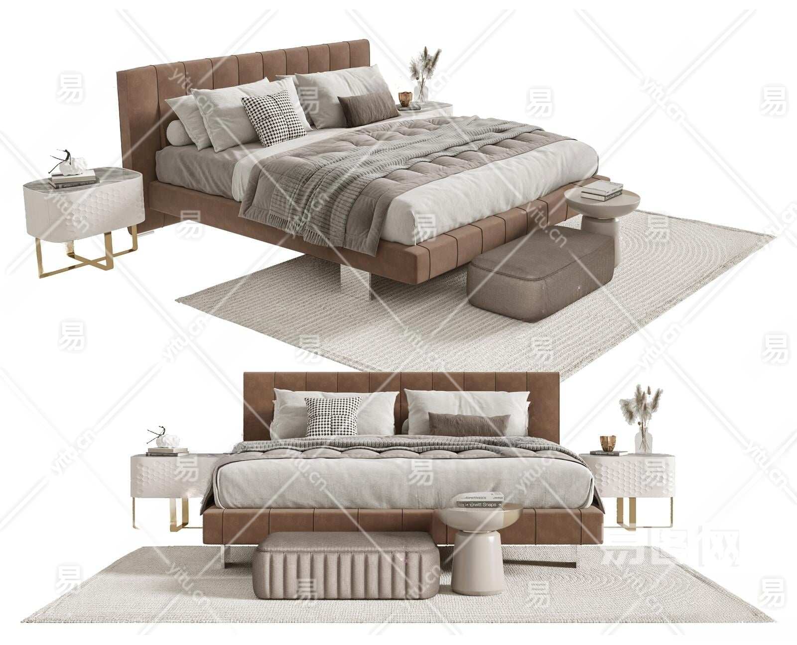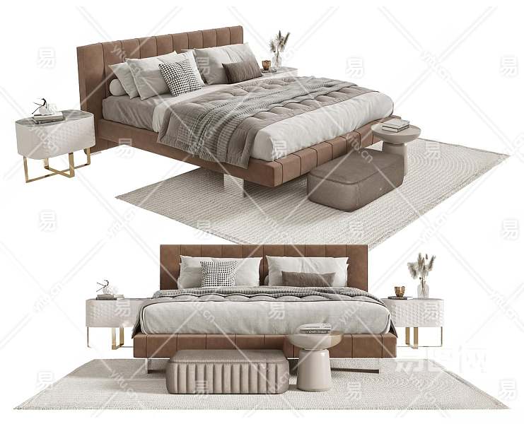 现代双人床3D模型下载