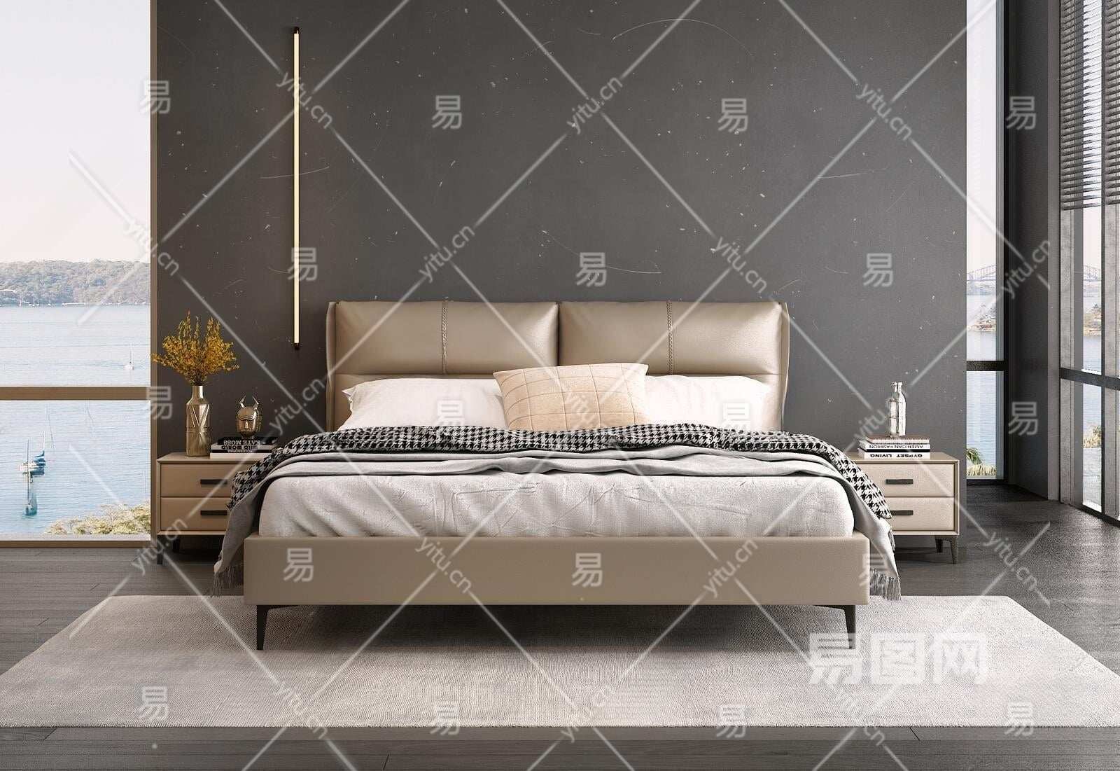 现代双人床3D模型下载
